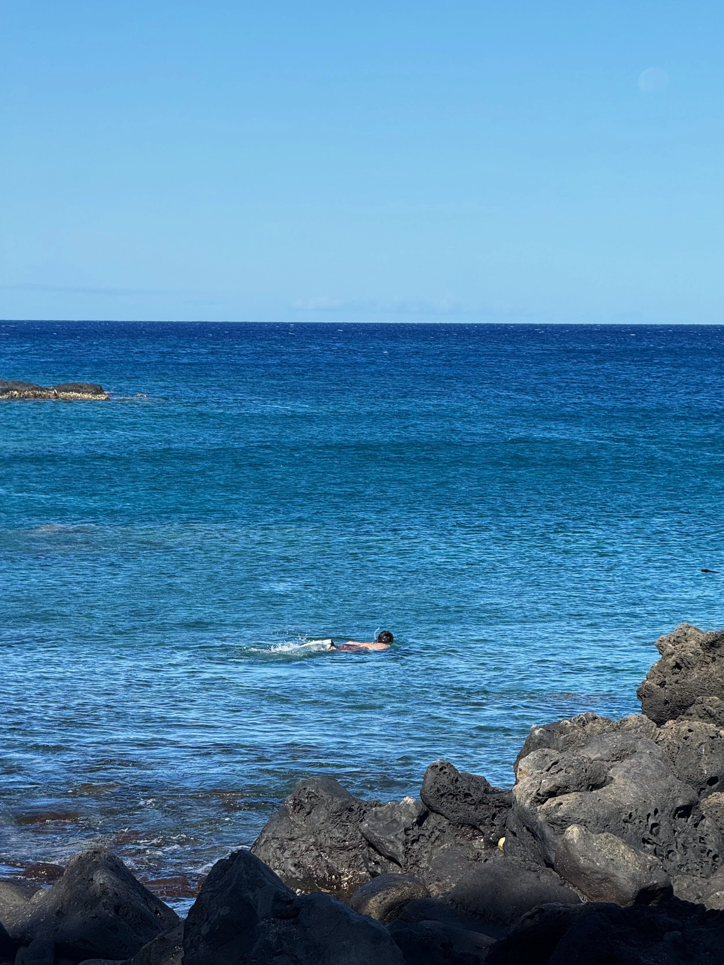 But anywho, in the morning at Kapa’a Beach Park, we hung around so we could snorkel a bit, but there were so many bees by the water that Lily and I just hung out near the van while Adam snorkeled for a bit. The plan was to take turns snorkeling, but I was too scared to get in the water near the bees, haha.