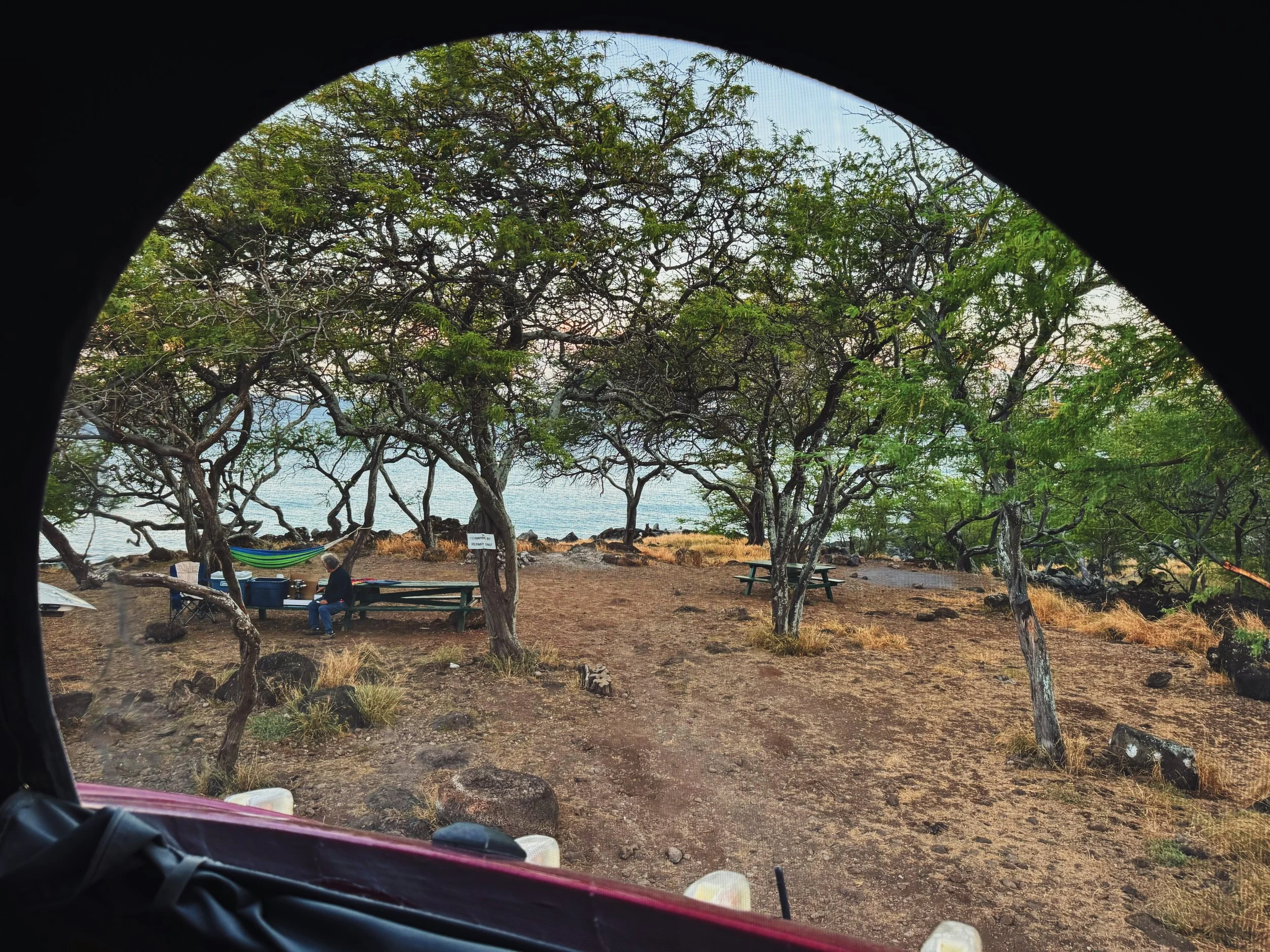 We stayed at Kapa’a Beach Park overnight since it was literally the last place on the island to accept a last-minute reservation after we had a mini disaster at one of the Hip Camp spots we booked…