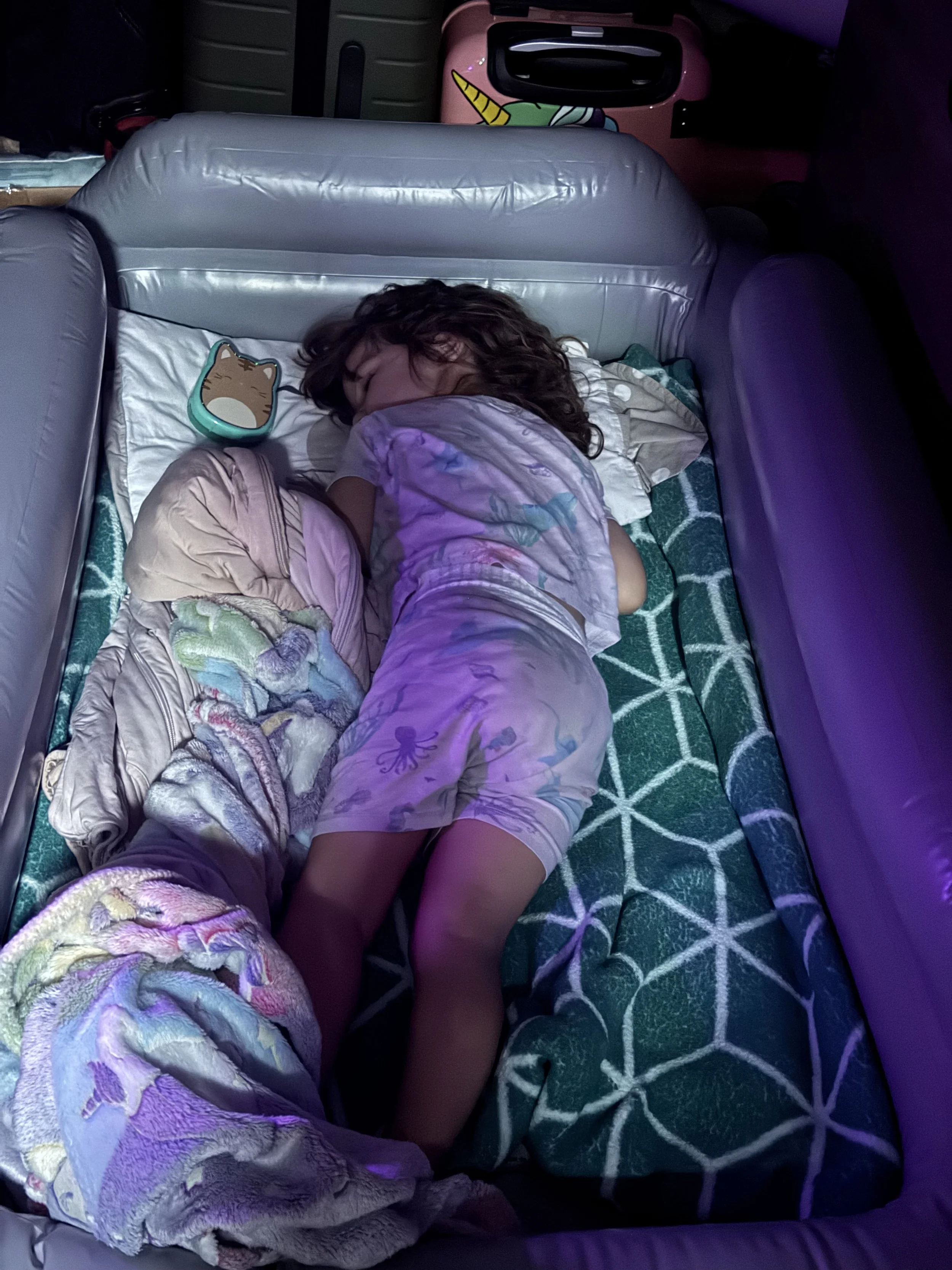 Adam and I slept in the bed upstairs in the van, and Lily’s floor bed was down near the kitchen. It worked out pretty well!
